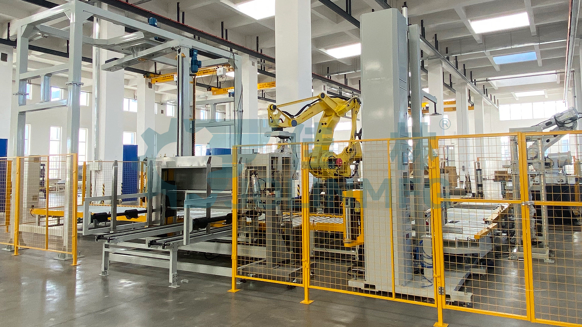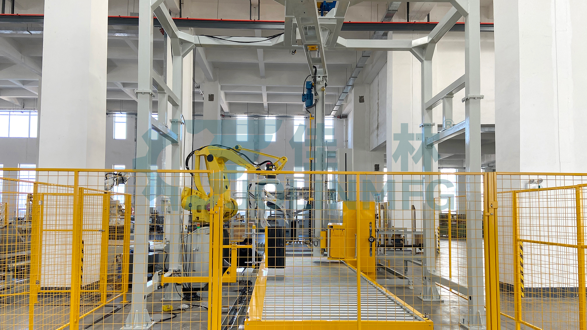 佳林“無紡布自動包裝線”集ERP和MES系統(tǒng)、周轉搬運、生產線合流、機器人自動碼垛、自動放紙板、自動纏膜打包、自動覆頂膜、自動尼龍袋纏繞包裝、自動稱重、自動打印貼標 、自動翻轉下線、自動入庫、立體倉庫等下游流程。
