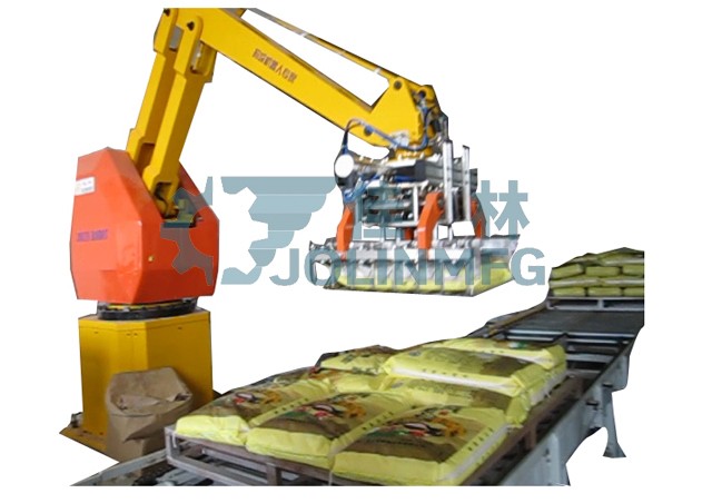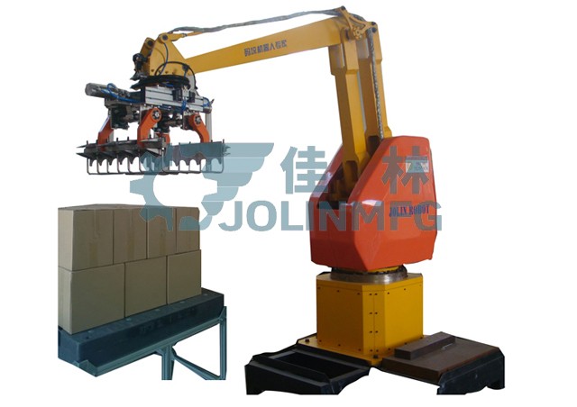 パレタイジングロボット機(jī)械は化學(xué)工業(yè)、飲料、食品、ビール、プラスチック、エアコンなどの生産企業(yè)に適応して、段ボール、袋、缶、箱、瓶詰めなどの各種形狀の完成品に対して箱詰めとパレタイジングを行う。構(gòu)造が非常に簡単で、メンテナンスしやすい;主要構(gòu)成部品が少ないため、メンテナンス費用が低い。ロボットは狹い空間に設(shè)置することができて、有効に使うことができます;すべての制御は,キャビネットの畫面上で操作可能であり,操作は非常に簡単である。全天候作業(yè)ができて、機(jī)械を配備して多くの人工の仕事量に取って代わることができて、これによって毎年數(shù)十萬の人力コストを節(jié)約できて、人員を減らして効果を増加する。